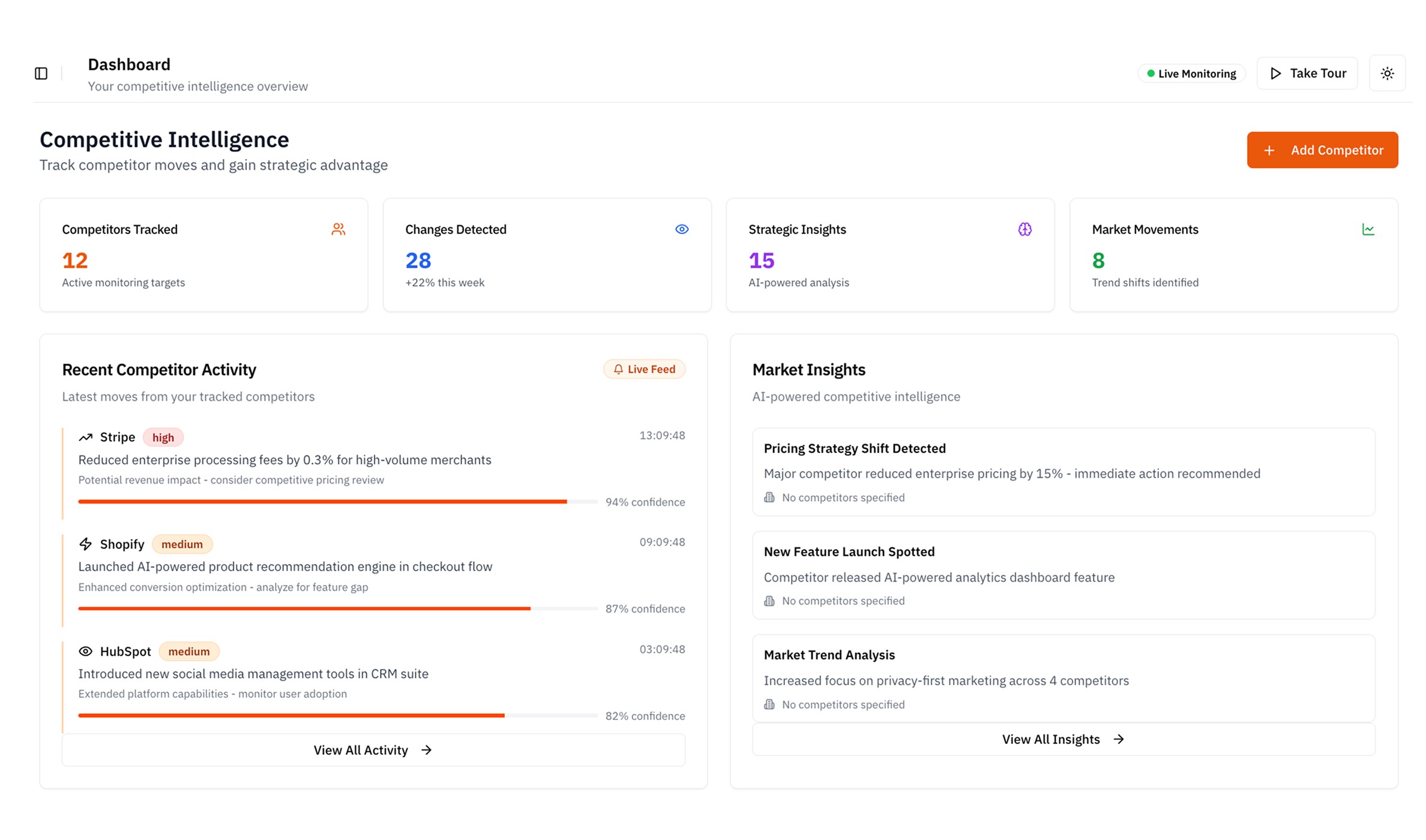 React at the exact moment. Get real-time signals the instant your competitors change direction.